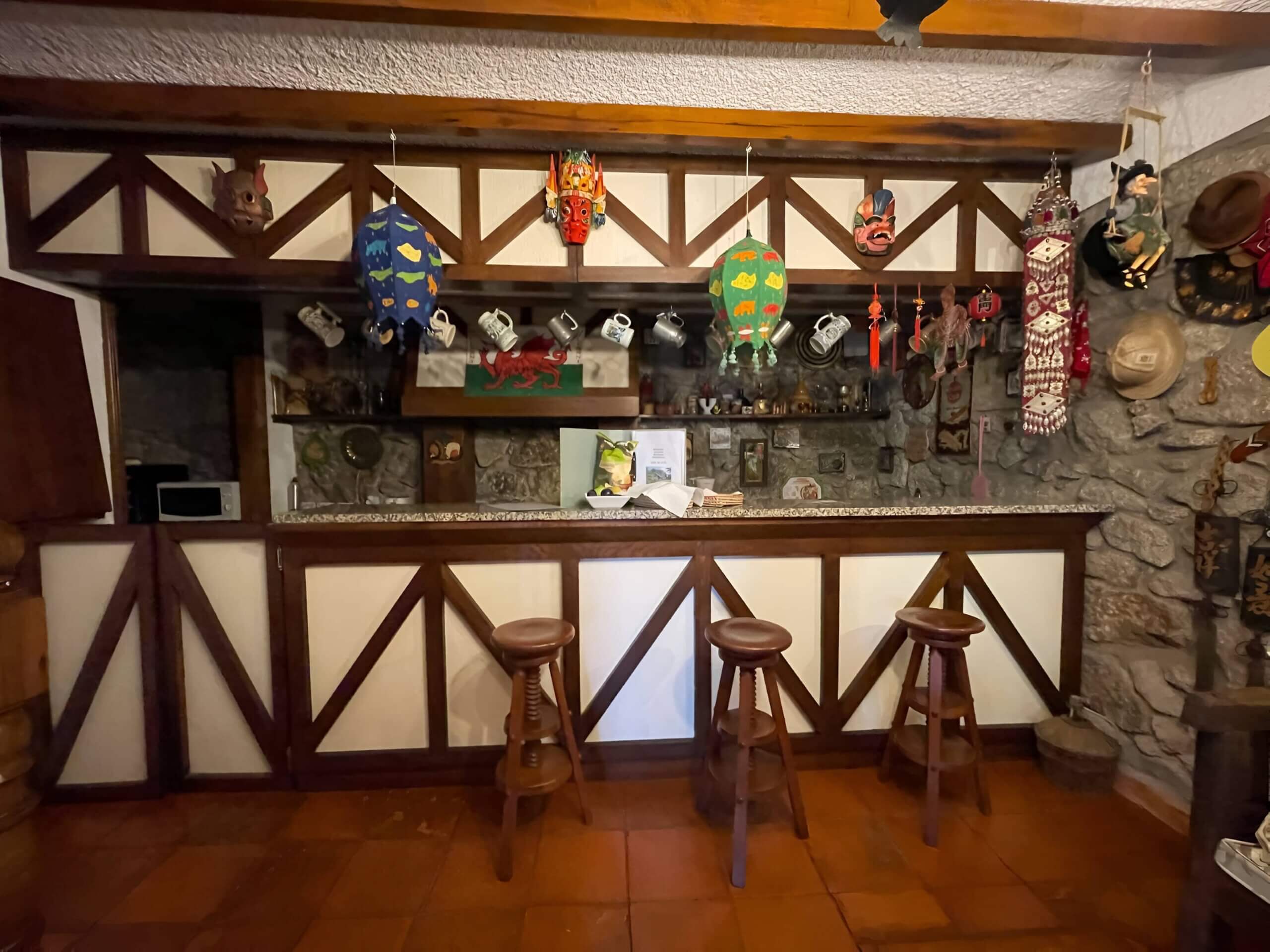 One of the interior rooms has been converted into a kitchen/bar area and is filled with souvenirs (mostly hats!) from around the world. The collection was primarily built by the owners (Peggy and Mario), but many friends also contributed to this quirky and picturesque space. There are also two antique settles to sit and relax and, perhaps, taste the local wines.